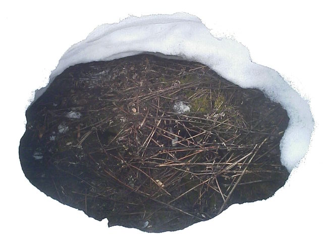 12:06頃。戻る途中で雪面に穴があいていたので覗いてみました。どうも風穴っぽいです。ハイシーズンはどうなっていたのか興味が湧きました。