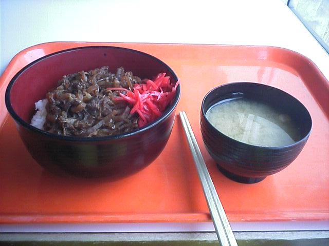12:50頃。カフェテリア栂の森の牛丼@950。一遍上がってくるとここしか食事が出来ないため物価は高めでした。