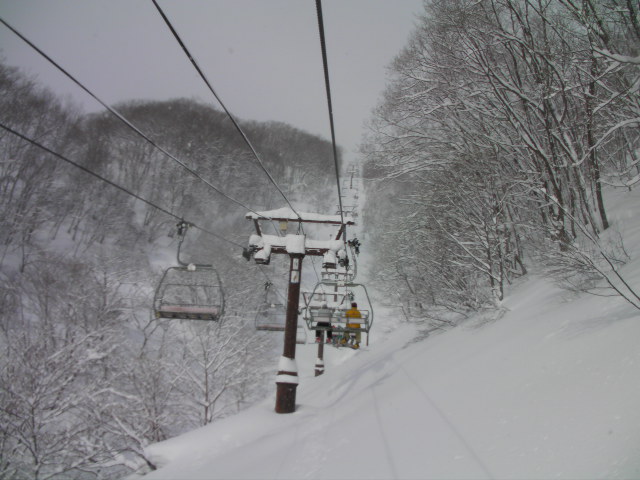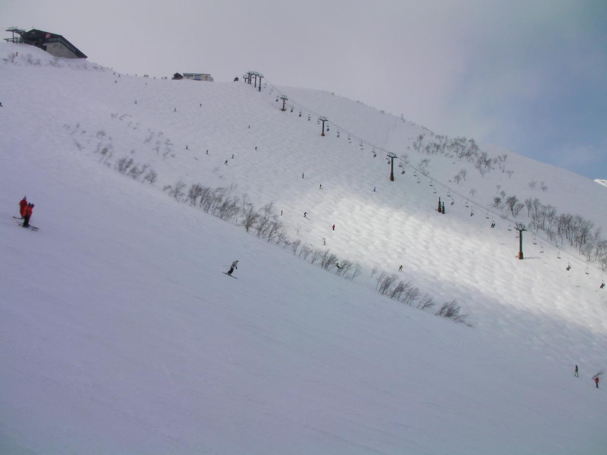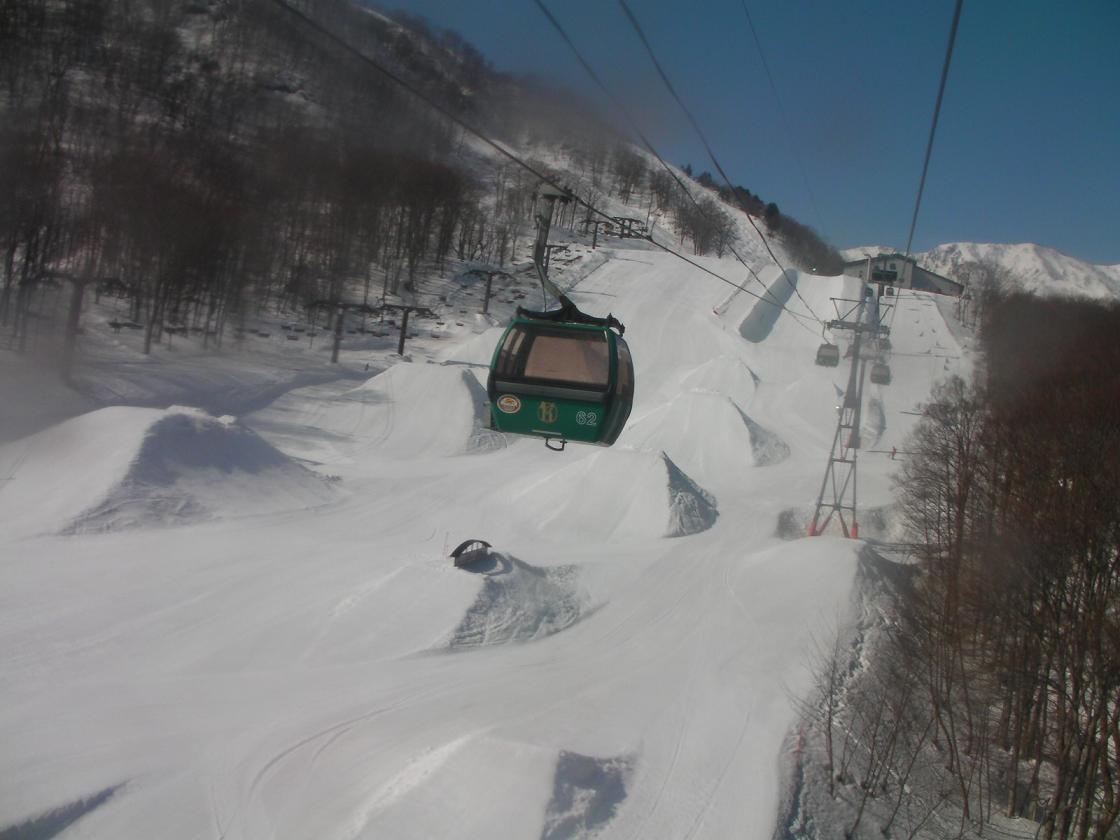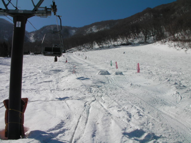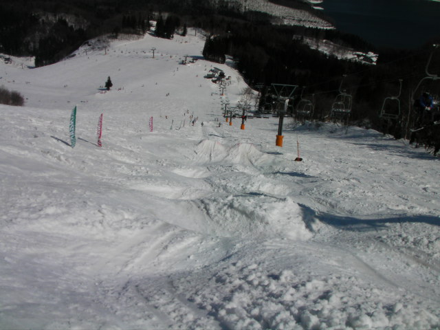 大勢のモーグラーで賑っていました。気後れして滑走しませんでした。ここにかかるペアリフトだけリフト待ちがありましたが、待っている人の板を見ると、ID-oneとかReIZMとかHARTとか細身の板ばかりでした。