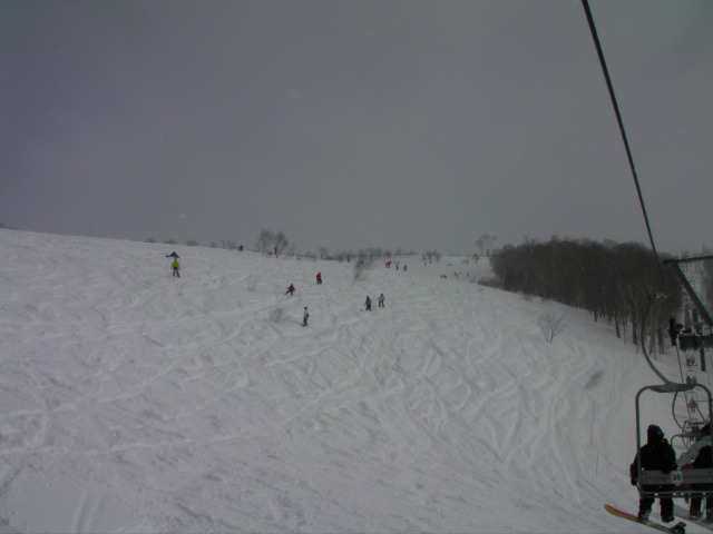 ゴンドラで登り返しハンの木コースの上部(ハンの木高速ペア分)を滑走しました。ここも柔らかい雪で滑走性は良かったです。午後はスノーボーダーが大勢滑っていました。