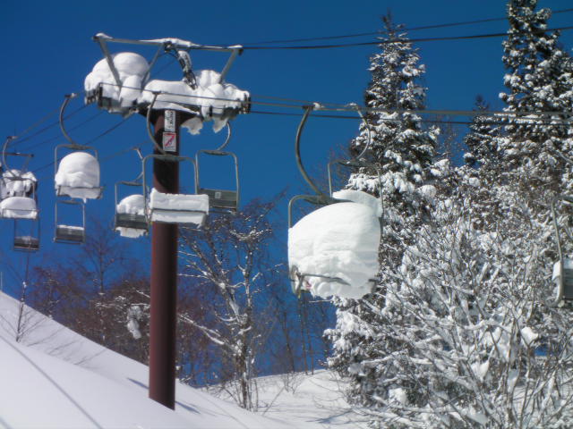 本日のスノーナビのレポはこちらです。今シーズン初の400cm越えだったようです。リフトがやけに低く感じ、実際乗車中もスキーやスノボーが雪面に当っていました。前泊した駐車場の車は原型が判らないほど雪を被っていました。