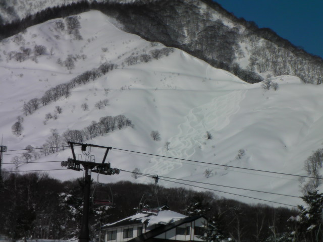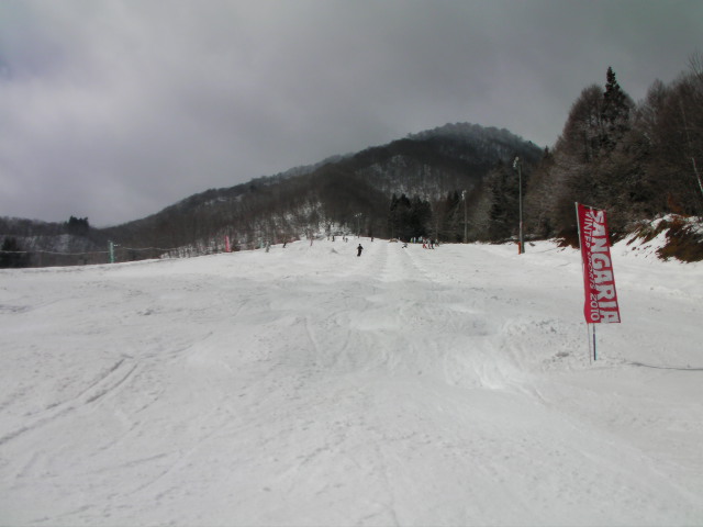 朝一番の滑走時はぱふぱふの新雪でしたが、午後には硬く締まってしまいポンポン飛ばされる感じでした。人の絶対量が多いスキー場は美味しさが長続きしませんね^^;しかし硬く締まった雪だったので、人が多い割りに荒れた感じではありませんでした。尚馬の背Cと林間Cは大雪で雪崩の危険有り、ということで閉鎖でした。