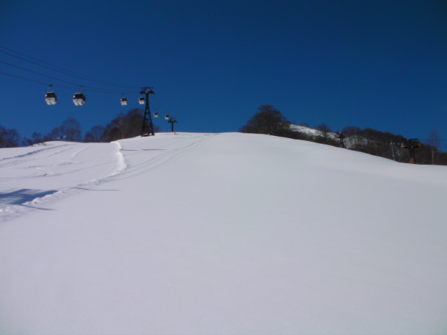 次はセントラルを滑るつもりでゴンドラから眺めると、何と!全面コブになっているじゃありませんかorz私の知っているセントラルは圧雪した整地なので、事前に確認できて良かったです。整地のつもりで飛び込んでいたら、今こうして書いていられなかった事でしょう。ゴンドラ山頂駅直下からの滑走は長くハードでした。途中でコースアウト寸前になりましたorz