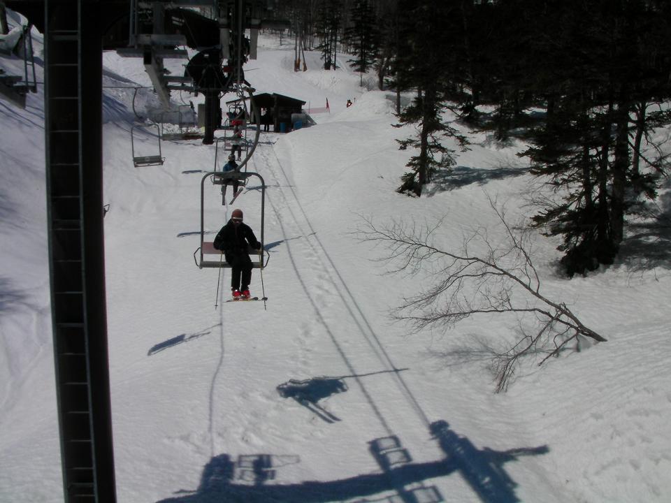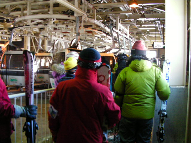 若干雪が緩んだ気がしたので再びスカイラインを滑ってみました。大分良い感じにはなりましたが、皆さん考える事は同じようで大勢の滑走者がいました。リフトも混み始めました。