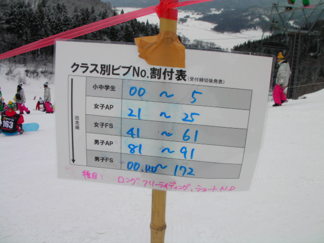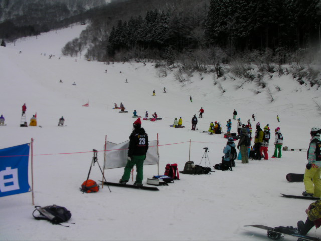 続いて大回りですが、板がアルパインからフリースタイルの組に変わりました。参加者の一番多いカテゴリーでした。アルペンボードより深く切れたターンをする方も居て見ていて、目の肥やしになりました。やはり美しいものは美しいですね~。だんだん目が慣れてきたので、自分なりに85点基準で採点してみましたが、概ねジャッジの評価と一致していました。