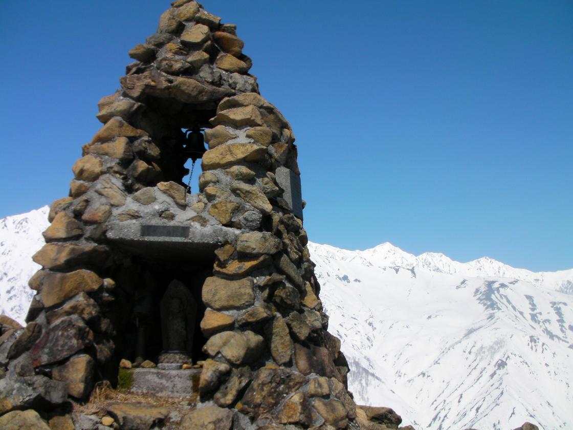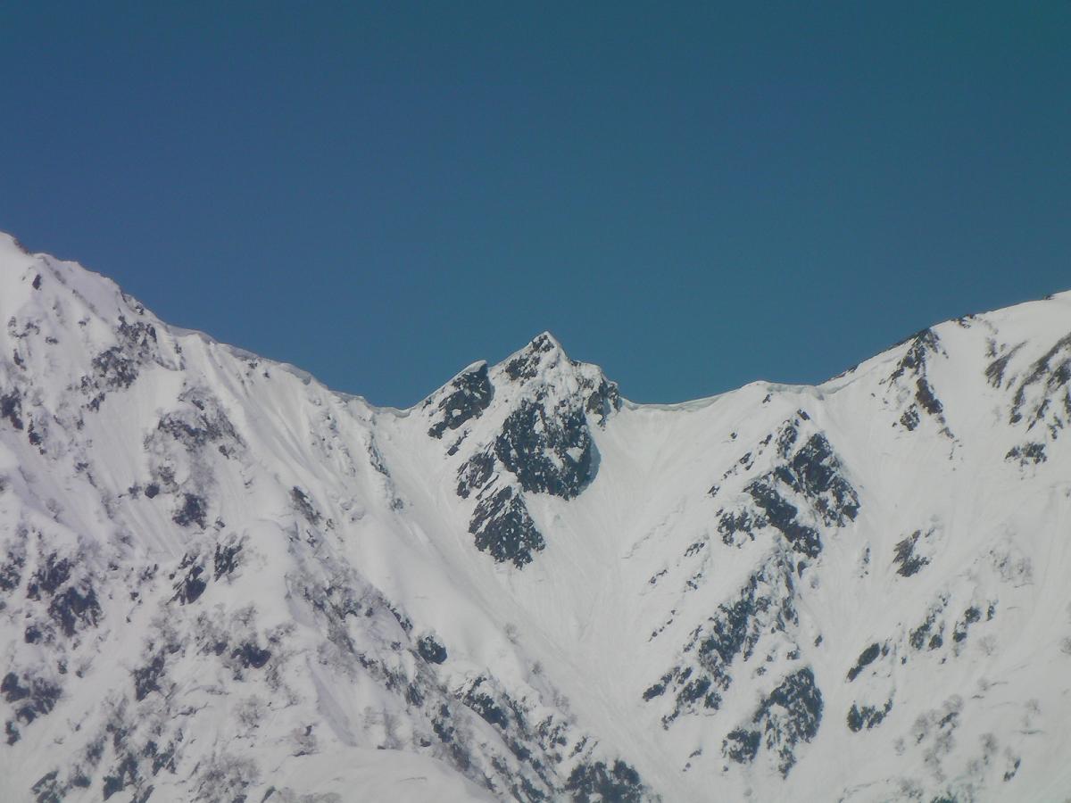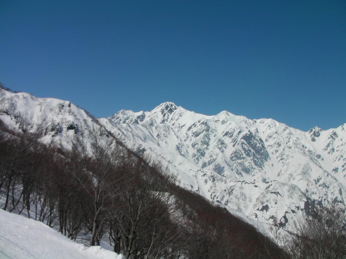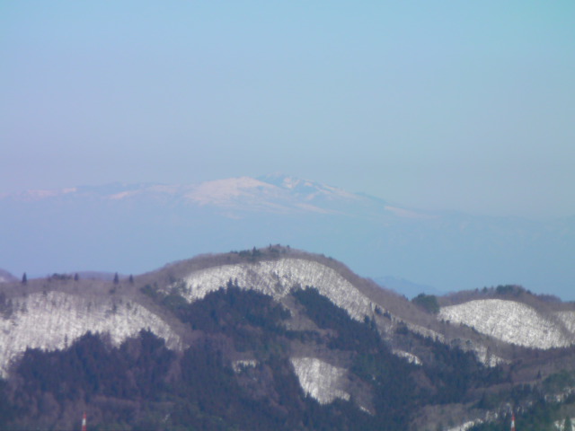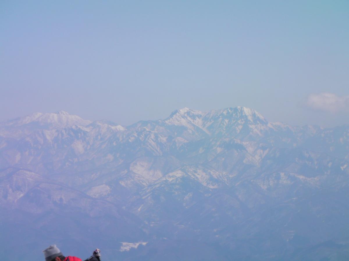 大町スキー場の廃止コースの山頂風景です。午後になって風が出てきましたが、相変わらず快晴が続いています。