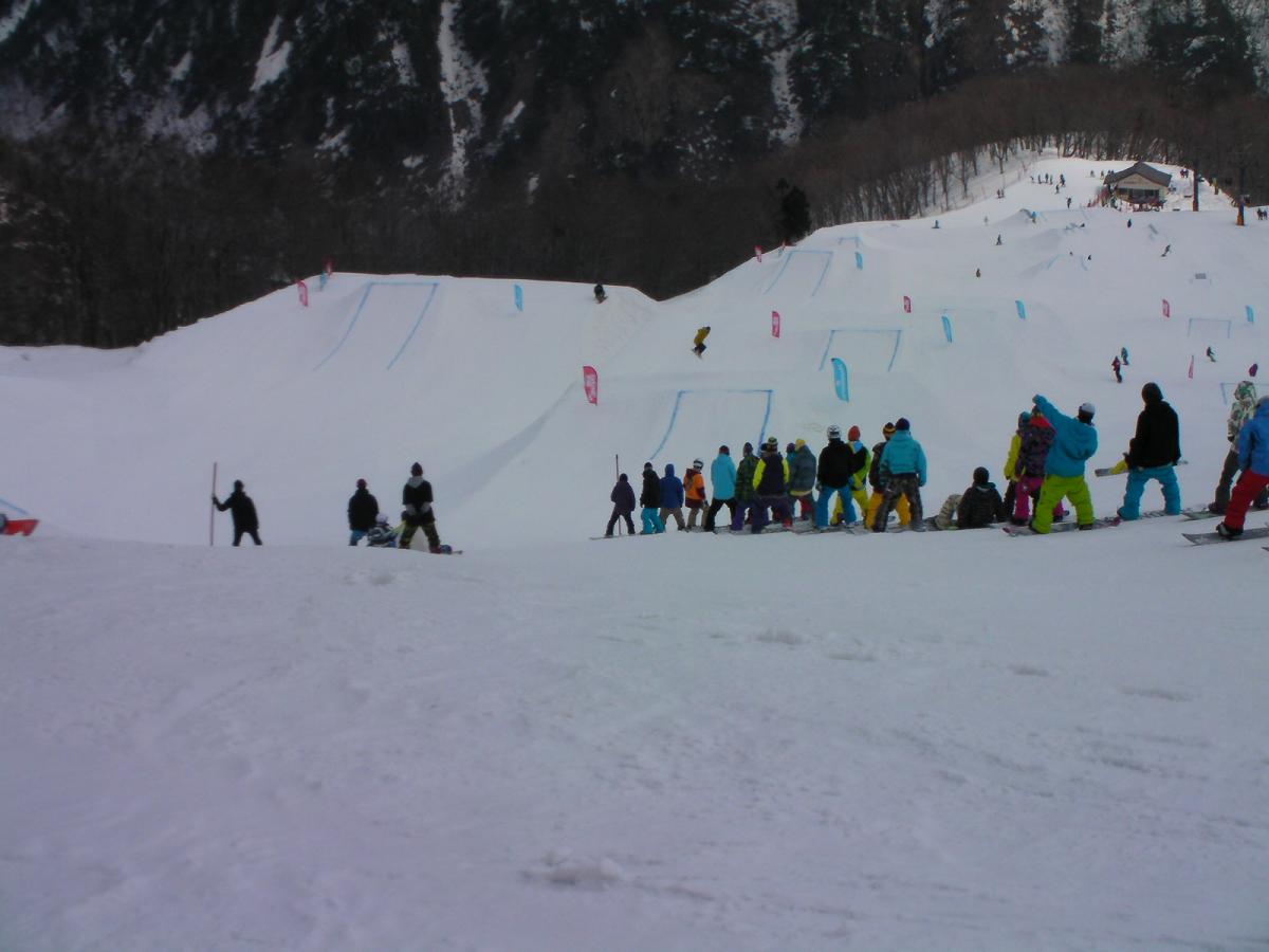 B級が滑れないのにA級を滑れるわけは無いのですが、今日はA級が開放されていたので、物見遊山で行って見ました(笑)実際に滑ったのはスタート地点までのアプローチのコブと第2エア台から下というキセルです(爆笑)