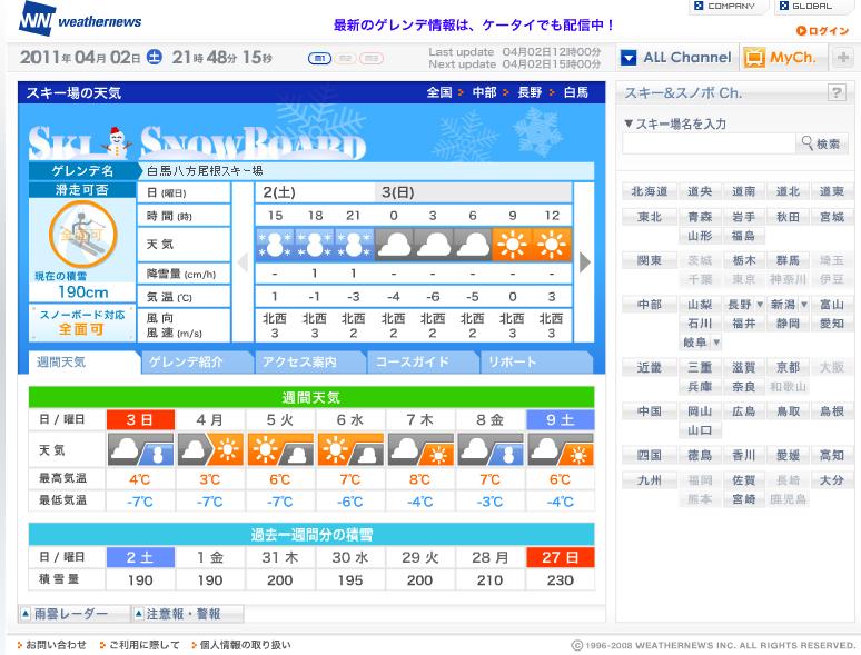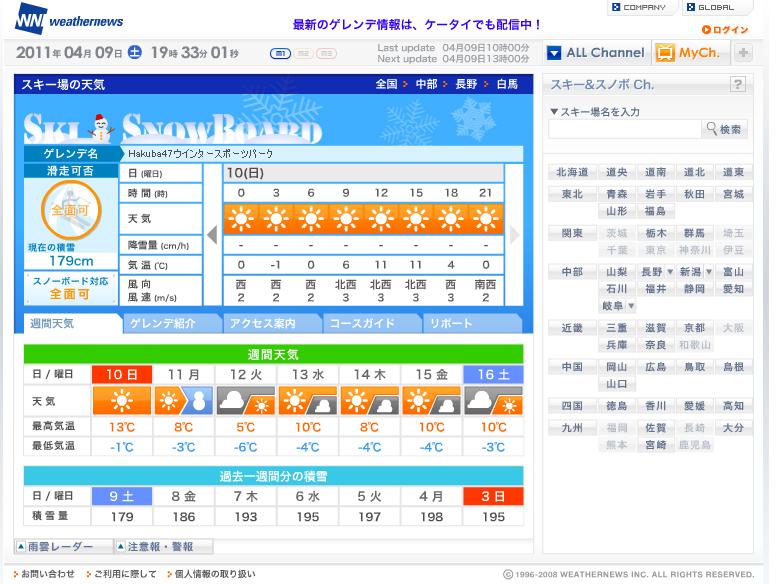 支援券使用とは言え春シーズンの白馬エリアの2箇所を滑ったので、欲が出て残りの47&五竜へ出かけてきました。白馬47WSPは全面滑走可能で、すべてのコースの動画を撮影することができました。またmixiを通じて47&五竜の日々の情報を頂いているえっちゃんさんにもお会いすることができました。「ゲレモバな日々」管理人のあみのさぷりさんも滑っていたようでしたが、残念ながら滑走面積が広すぎてお会いすることはできませんでした。