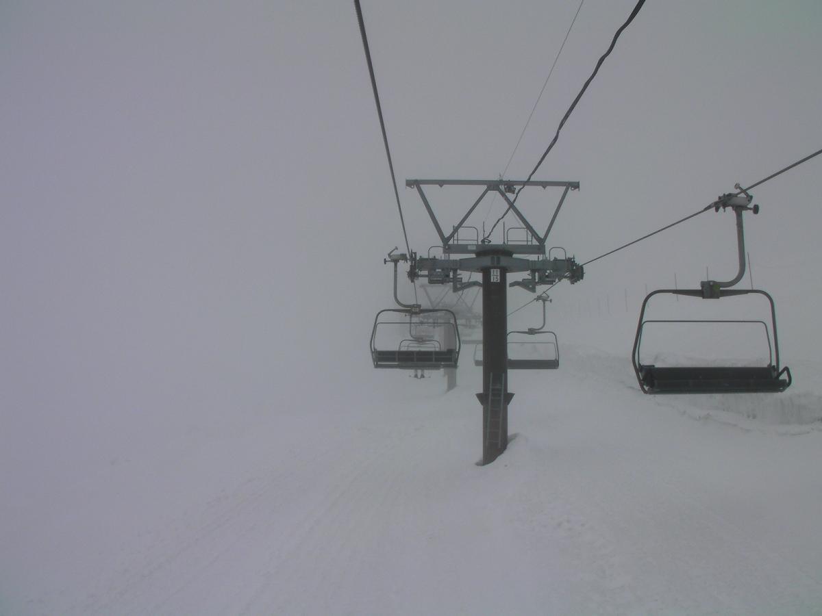 朝一リーゼンの滑走です。曇空で光量不足なのか雪面がよく見えず、カチンカチンの硬いバーンだったので、怖くてカービングが出来ず、ズレズレ滑走がやっとでしたorz