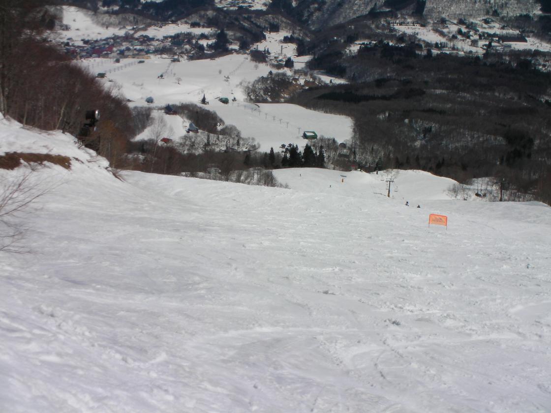 ゴンドラ山頂駅からアルプス第3ペア乗場へ向かうスーパーコースの滑走です。グランプリコース同様荒れていました。
