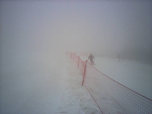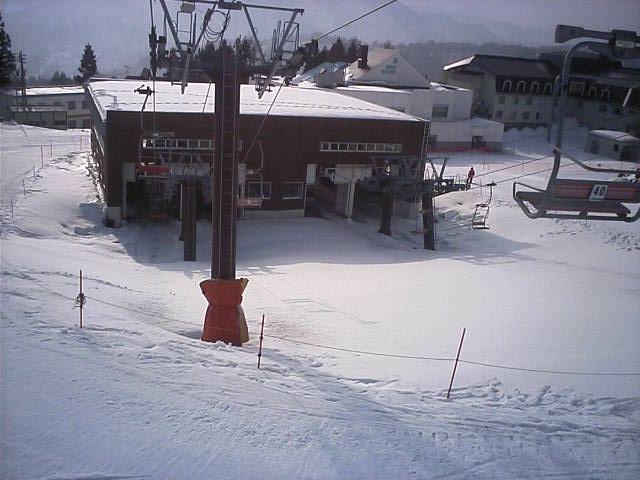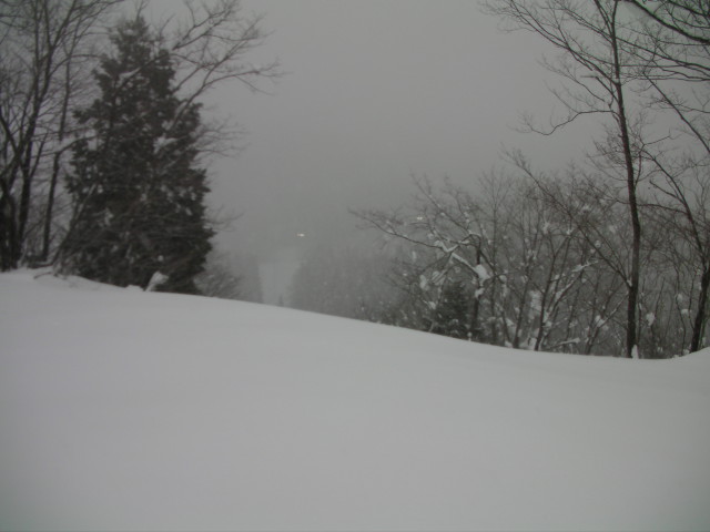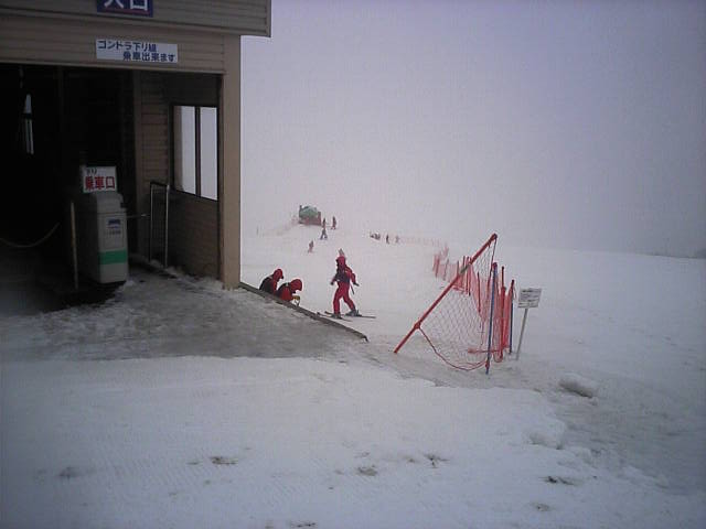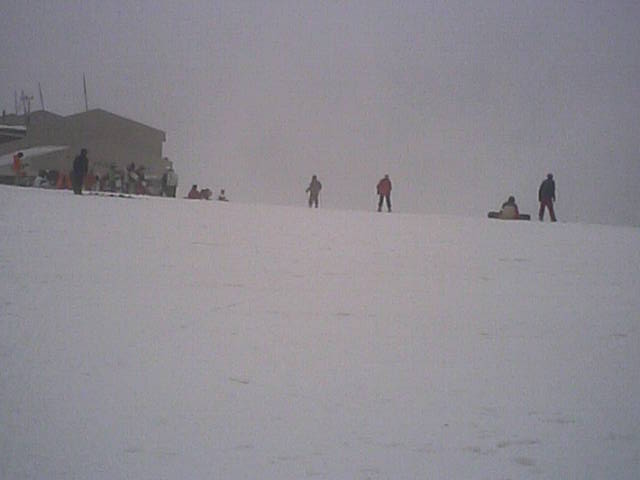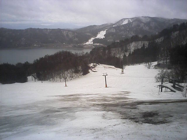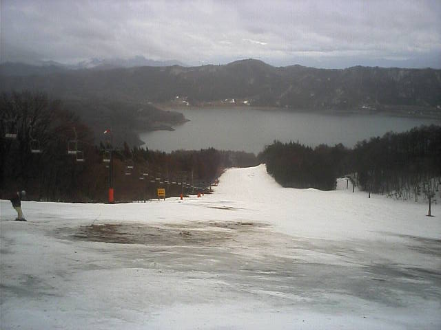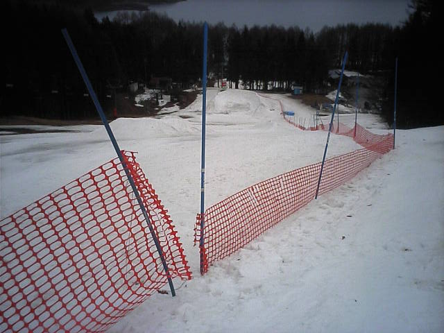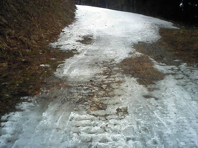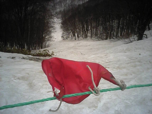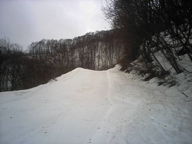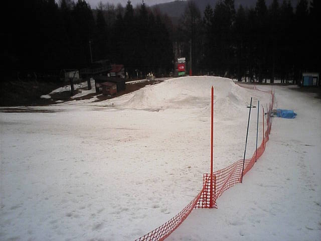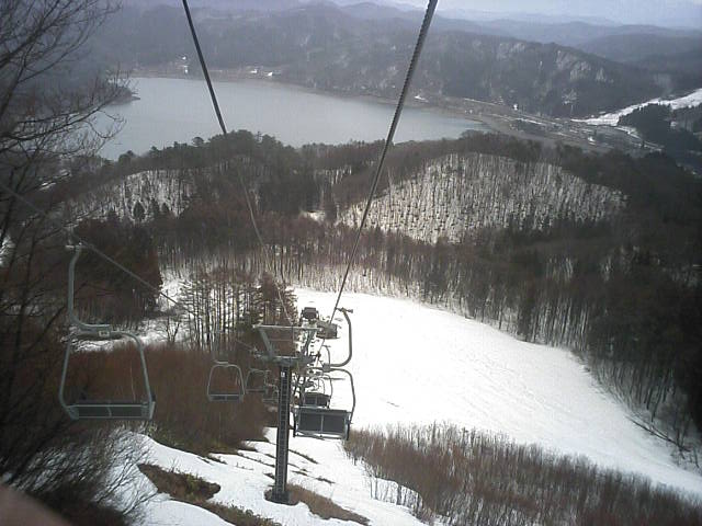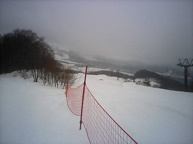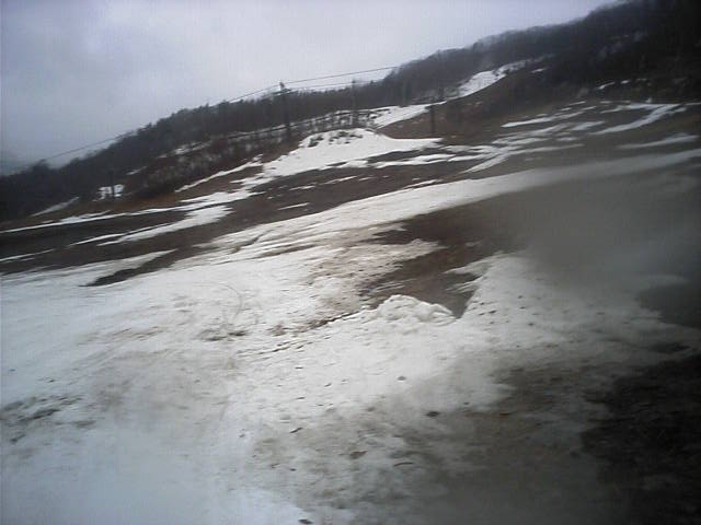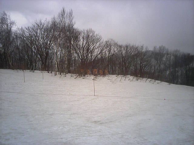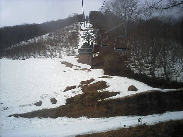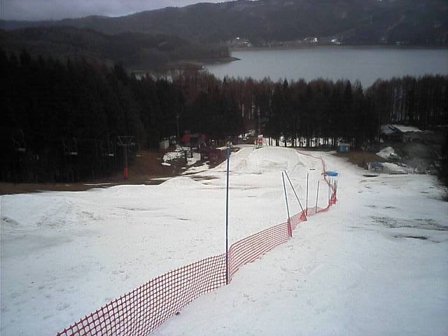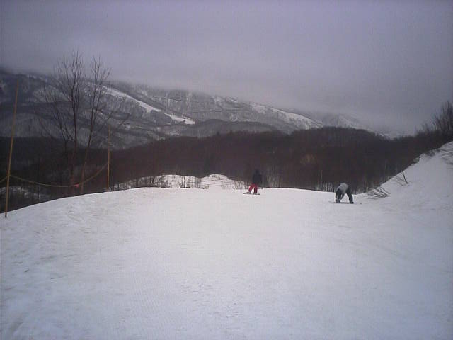 11:36~第5ペア1本で滑れるコース。上部は相当薄くなっていて、慎重な コース取りが必要だった。尚第1トリプルへの連絡通路は1箇所完 全に分断。板を脱いで渡ったorz