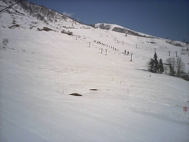 9:57~一旦は融雪で閉鎖されたゲレンデですが、3/27頃?からの降雪で復活したらしいです。しかし雪が薄いのでピステンでの圧雪はできなかったようで、滑走跡がそのまま残っていて不整地っぽい感じでした。