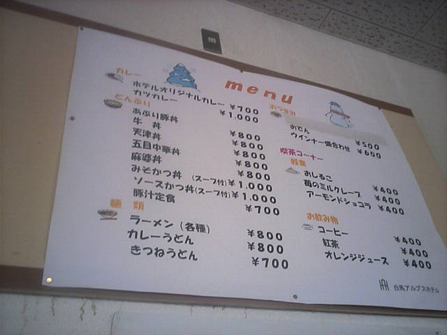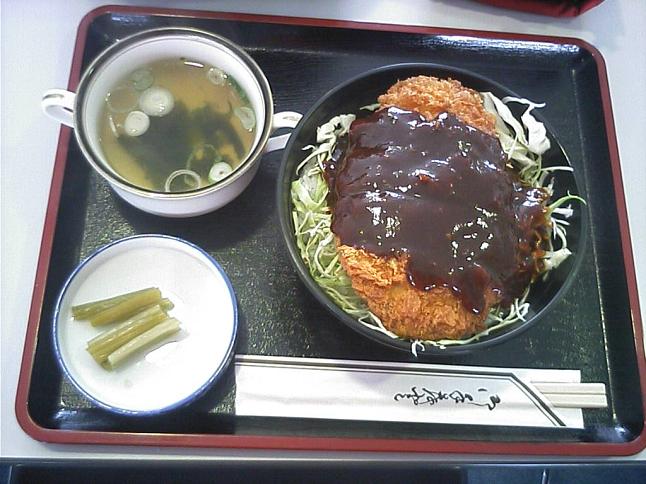 左:ランチ券指定のスノードロップ 中左:通常は自販機で自動オーダーですが、ランチ券は引換券となります 中右:みそカツ丼@1000 右:メニュー表
