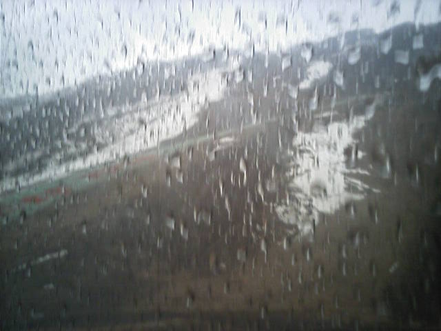 11:29~第5ペア乗車中に、ボウルセッションの会場を上空から。最上部に キッカー、バンク系が4個、最下部にボウル、という配置だった。 まだ小雨が続いていて、会場には誰も居なかったorz
