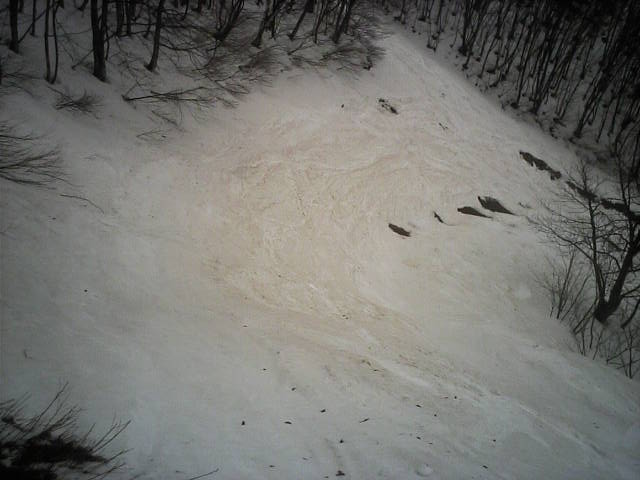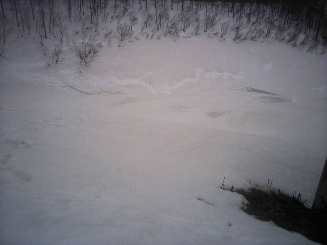 里見尾根の谷コース。この雪の塊は? 動画は画像をクリックして下さい。