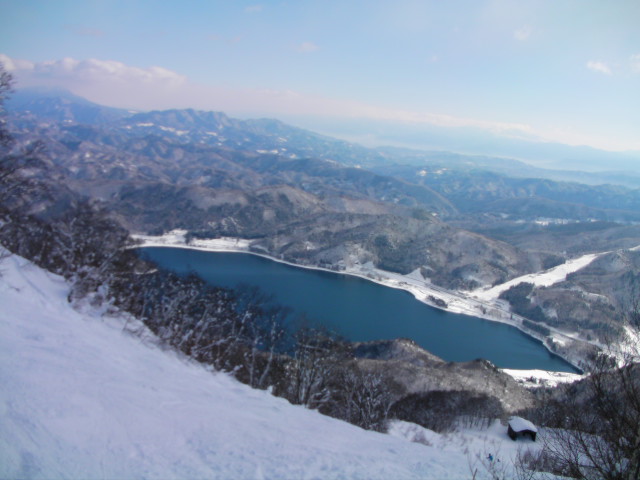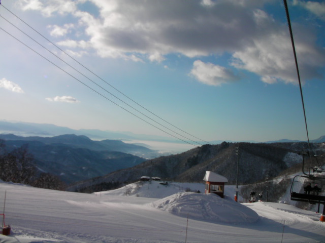 11:24~ゲレンデを移動。第2ペア降り場から、青木湖最北端の第5ペア乗 り場方向へ。こちらも板は良く走った。