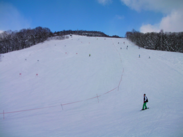 大会で封鎖されていたコース1-Bが開放されていました。最後の壁部分が急に狭くなり圧迫感がありますが、全体的にフラットな1枚バーンでカービングには適していると思います。尚大会は「ベネフィット・ワン スキー・スノーボード大会」で誰でも参加できるようです。現にワンピではなく普通のスキーウェアーの方も出ていました。所属が「日本駐車場開発」という方が多数居ましたが、関係者も出場OKのようです(笑)