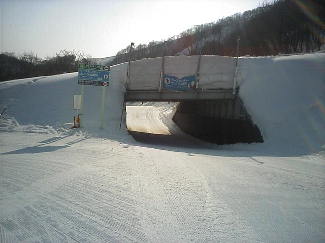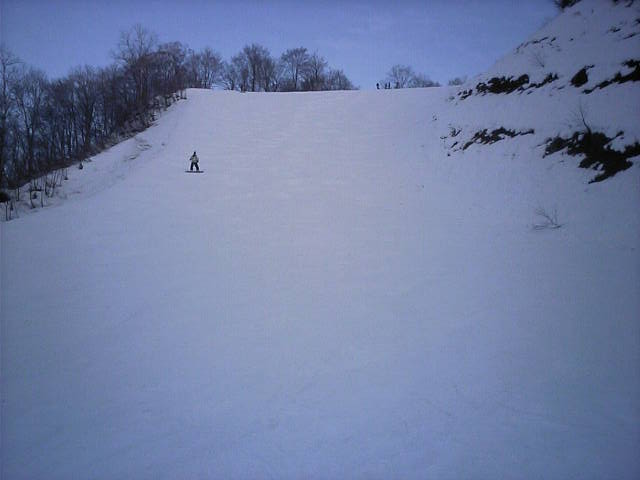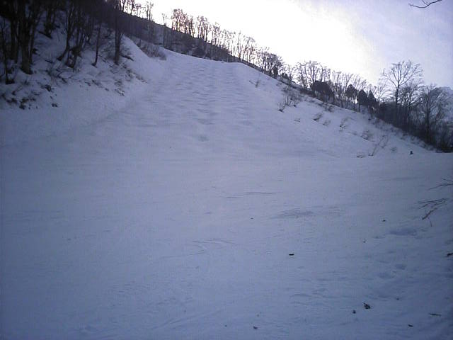 パノラマ脇の林間?林道?コースです。午前はあまり滑走者が居ませんでし たが、午後はボーダーが壁や地形で大勢遊んでいました。9:20 12.9MB