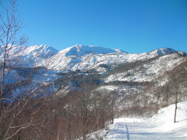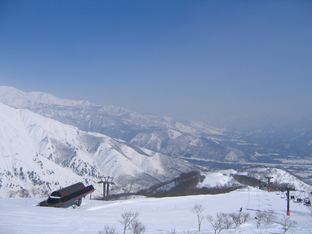 遠くに岩岳山頂ゲレンデ