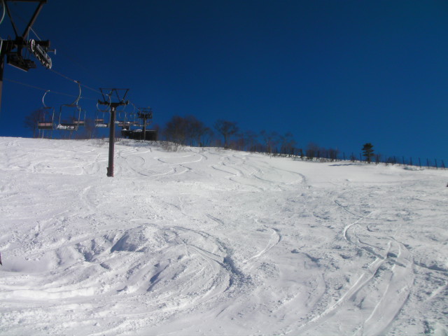 朝一、ゴンドラを降りたときいきなりキュッキュッと粉雪特有の音が聞こえ、思わず声を上げてしまいました。これだけの日差しでしたので、日中は若干緩んだ時もありましたが、終日Goodなコンデションと晴天に恵まれました。これでシーズンイン割引価格の2,500円。本当にラッキーな日でした。
