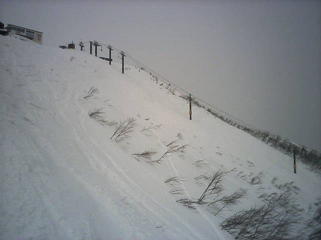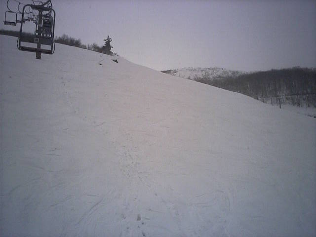 09:43スカイライン上部の雪の様子。既に時遅しでしたが、新雪がギタギタに食われていましたorz凡打製造機(信州有賀峠jr)には整地を滑るように言い聞かせ、所々残った新雪の食べ残しをいただきながら滑りました。パノラマとは明らかに雪質が違います。音はしないものの軽い粉でした。