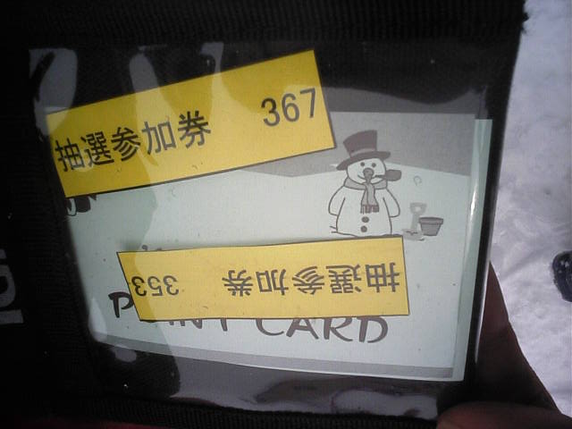 続いてお待ちかねのガラポン抽選会。8時半頃でこの人数。40分位後発の裏山系従兄弟は580番台と言っていました。予定では1000人までとの情報でしたが、そこまで行かなかったかも?確率は良くなるのでしょうか(笑)ちなみに1等はペア宿泊補助券とペアリフト1日券。