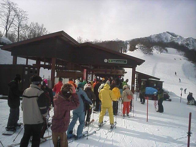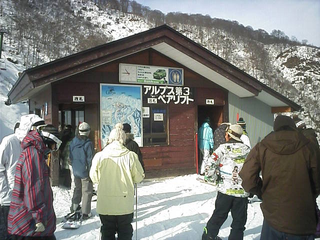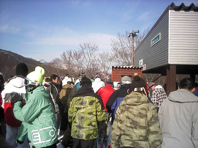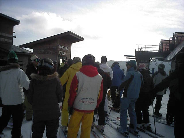 午前に比べると多くなりました。これで5分程度。終了間際判りましたが五竜から相当数流れ込んで来ていました。このリフトの利便性を知っている方だと思います。