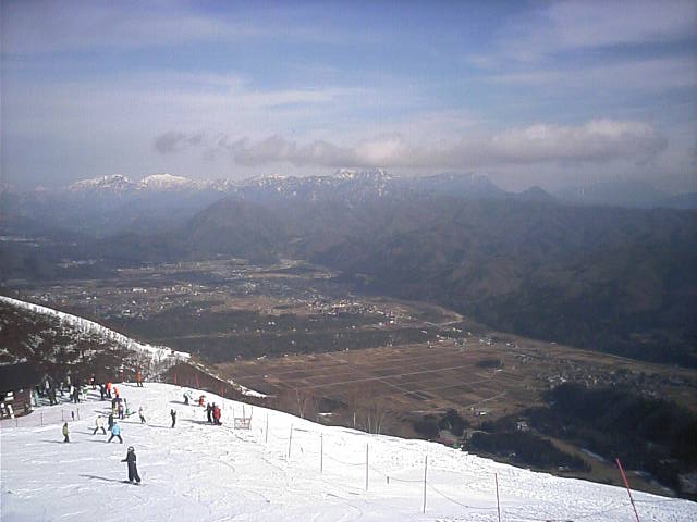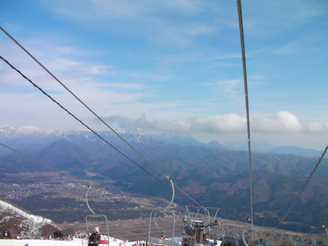 途中で画像記録することも忘れリフト乗り場まで一気に降りていました。下には八方尾根の町並みが見えますが、一気に高度を下げたなあ、と感じられる風景です。