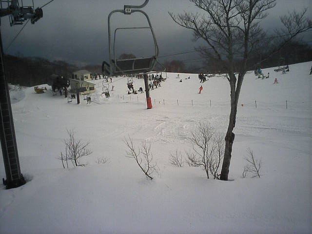 この所の金融危機+円高で外人客が減るのでは?との予想がされていましたが、さにあらず、今日も結構な数の外人さんを見ました。2度外人さんと相乗りしましたが、このリフトではフランスからの留学生さんと会話しました。6ヶ月ほどのステイをして1週間後に帰国予定だとか。片言ですが日本語も日常会話の範囲なら何とかなりそうな感じでした。フランス人ですが会話は英語と日本語のチャンポンでした(笑)