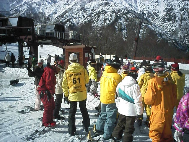 八方尾根SS所属のナショナルデモ&イントラ60人によるイベン ト滑走。これだけ密集して滑ると圧巻です。11:06 7.92MB
