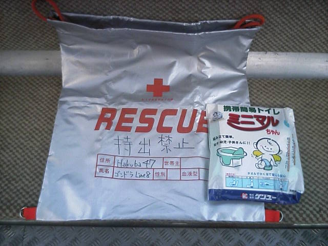 何気なく座席の下を見ると画像の物を発見。思わず引張り出して撮影(笑)今まで気付かなかっただけで、他のゴンドラにも有ったのだろうか?まあ11時間も閉じ込められたりしたら必需品でしょうな。備えあれば憂いなし。この後47へ戻ったら47のゴンドラもペアリフトと同じ速度で減速運転してました。