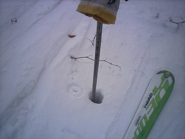 判りにくい画像になってしまいましたorzおよそ15cm位で底に当たった感じでした。底が地球なのか根雪なのかは未確認です。