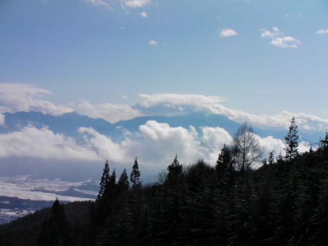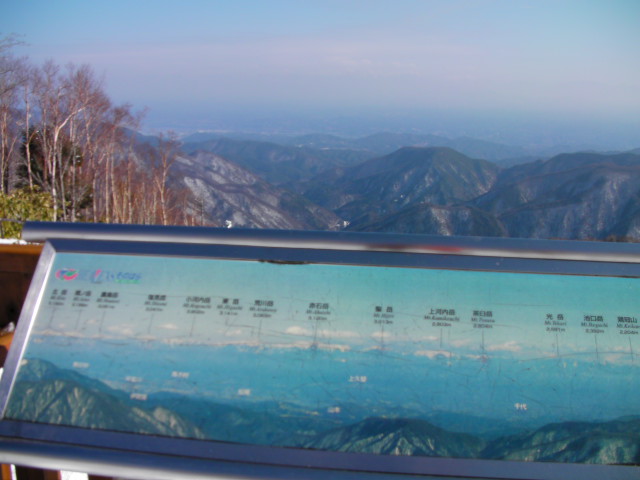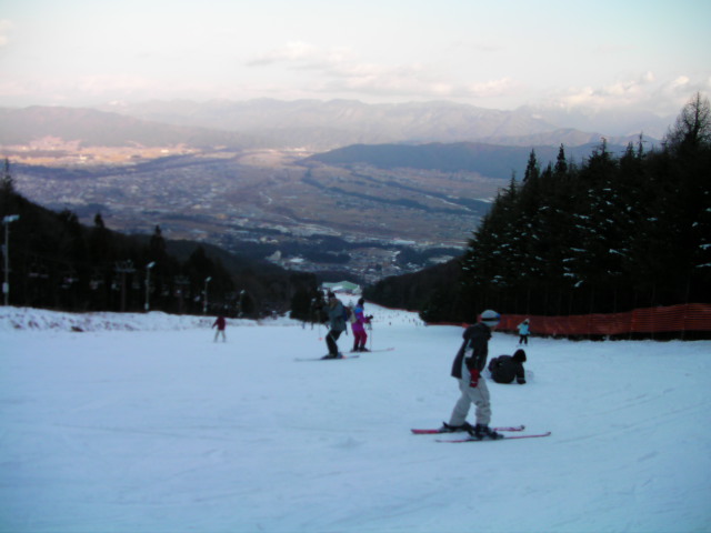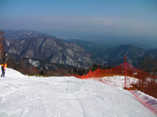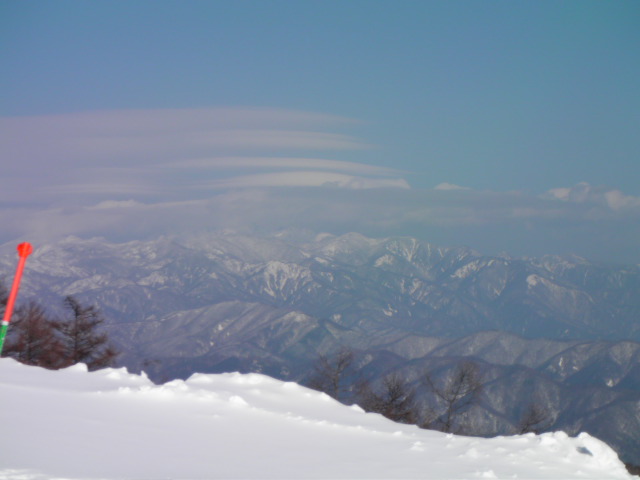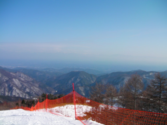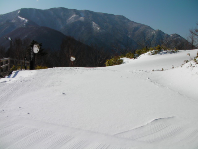 本日1本目の滑走はパノラマコースです。極上の粉雪バーンに仕上がっていて、ワンランク上の滑りが出来た!ような気分にさせてくれました。朝のうちは快晴だったのですが、南アルプス方向は靄に霞んでしまい、綺麗な眺望は見えませんでしたorz