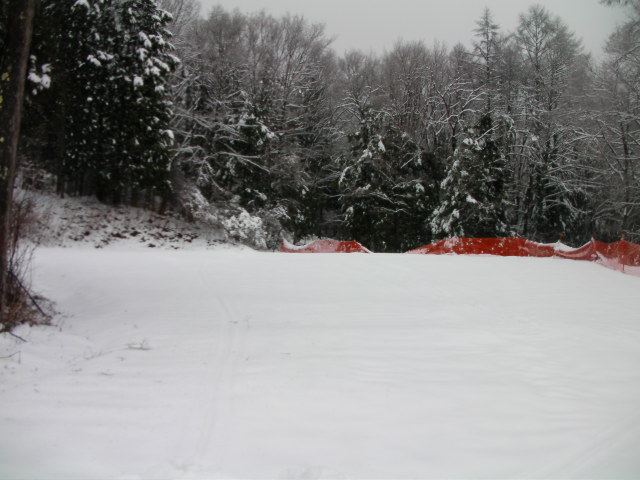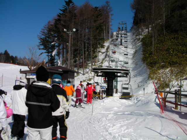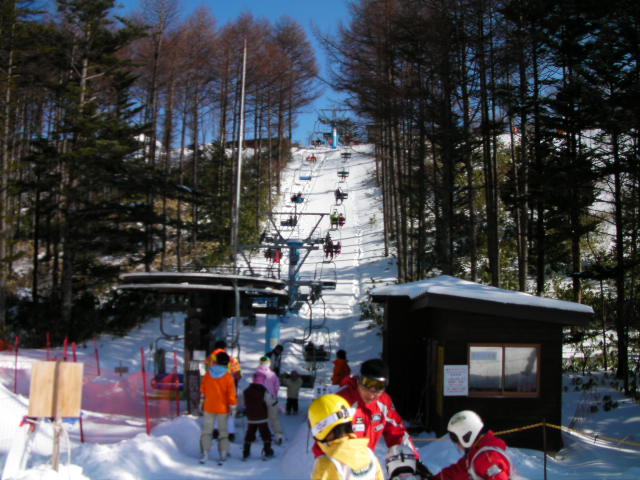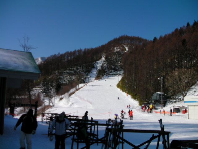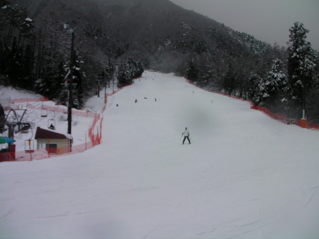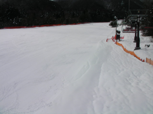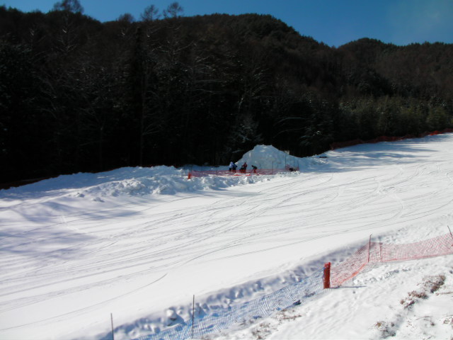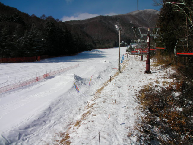 同じくパノラマコースですが、TOPからの短い中急斜面を迂回するコースで、このスキー場の最長コースです。しかし合流後も狭い部分があって、やや難易度は高めです。スキーヤーオンリー、園原ICから極近という立地条件でファミリー層が多いのですが、皆さんこの地点で苦労していました。
