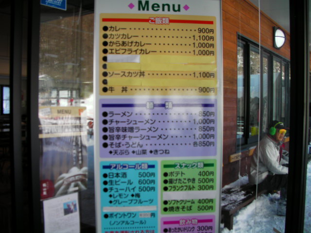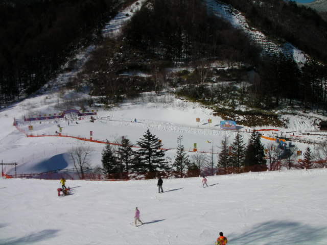 最右翼にあるDコースです。ここはやや雪が薄く地面が透けて見えそうな部分もありました。斜度が緩んだ辺りにキッカーが2基ありました。アイテムはこれから増やすみたいです。「チャイナパーク」という名称で呼ばれているようです。パーク利用には別途@100が必要のようです。CDコースはリフト・バーンとも空いていました。