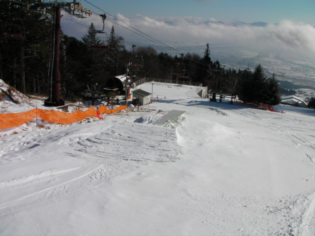 初来場した時にはキッカーが林立していて驚いたスキー場です。ここまでパークに特化するのも生き残り策としては有りなのでは?と思わせるスキー場です。その為か来場者の8~9割はスノーボードでした。今日の地点ではまだアイテム数は少なかったのですが、その内フリーで滑る所が無いくらい、多種多数のアイテムが設置される事でしょう。