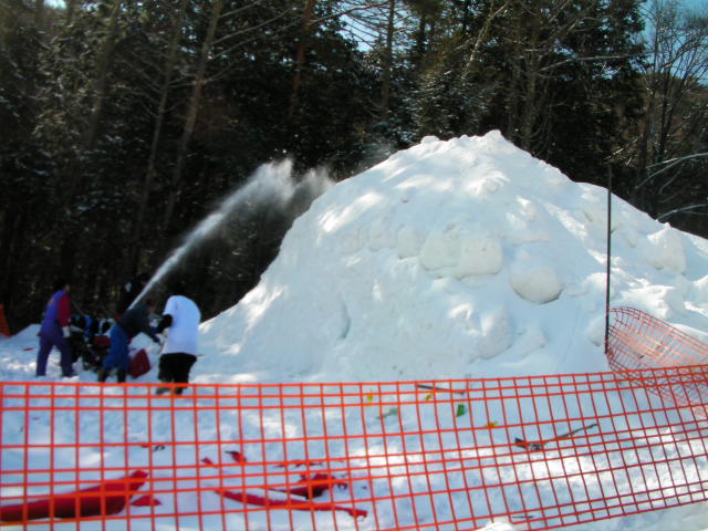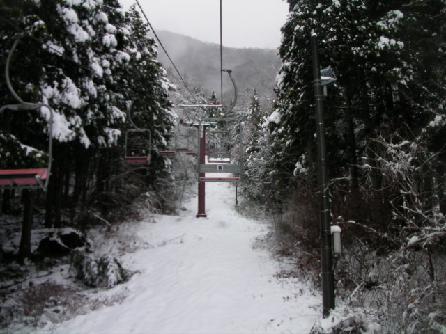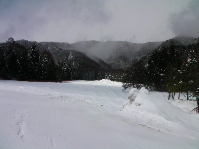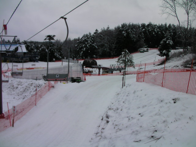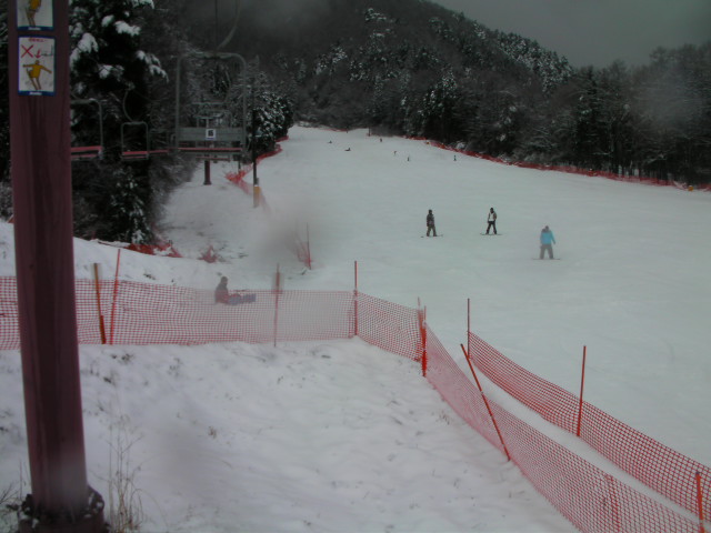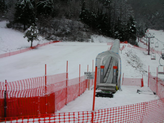 ゲレンデの先が見通せないほどの降り方になってきました。一度滑った事はあるゲレンデですが、やはり1本だけで様子判らなかったので、手持ちのまま慎重に滑りました。ゲレンデ中央に設置されたままのスノーマシンが特徴的ですが、プレッシャーでもありますorz滑走者の少ない脇には新雪が溜まり始めていました。ある程度の規模があってアクセスが良いので多くのファミリーで賑っていました。