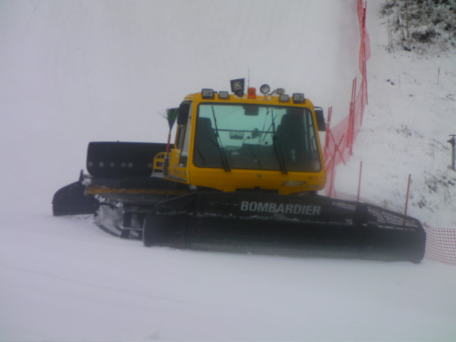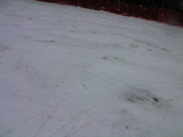 新雪は僅かで足の甲も無く、足の爪程度だったが、下地の硬さを感じさせず、柔らかな良く走る雪だった。(昨日ベースワックスを入れたのが効いたか?)ゲレンデ中間辺りで巨大キッカーを作成中だった。