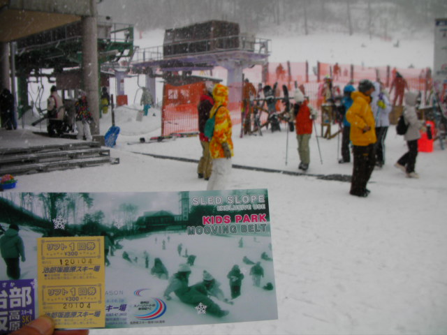 エンジェルコースを途中で右方向に180度ターンするとキッズワールド(ソリゲレンデ)のベースに出ます。支柱3本の第6リフト(ペア)で繰り返し滑走も可能ですが、このリフトは超?初心者用で上り下り乗車できることもあり、体感1m/sほどの速度で頻繁に停止していました。