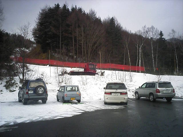 冬季間はここより上は閉鎖ですので一番上のPになります。他のPはゲレンデまでかなり歩くのでここが便利かな?と思い上がって来ました。ピステンの後ろのネットの所がコースです。滑り降りるとチケセン・レストラン・乗り場があります。ご覧の通りガラガラです。