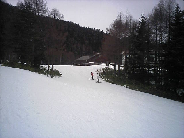 お昼を食べにベースまで滑ります。上部の中斜面で練習していたので、この斜面はほぼ転倒無で滑りきることができるようになってきたようです。