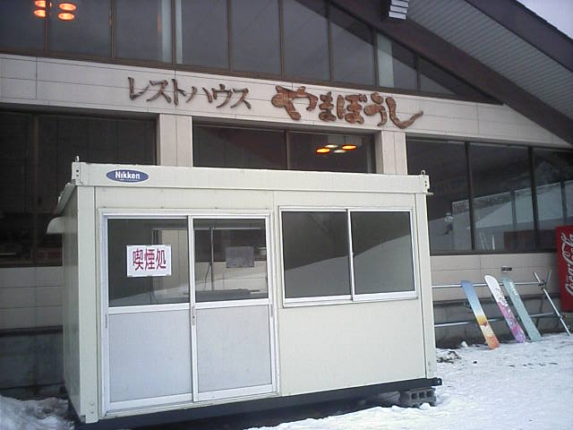 2シーズン前の喫煙所は建物内の展望室のような絶好のポジションにありましたが、トイレに行く方が必ず通る所だったのでクレームの嵐だったのでしょうか?こちらへ隔離されていましたorzそういう時代なので移設は構わないですが、「スキーヤーで喫煙者」は今や絶滅危惧種かも知れないorz