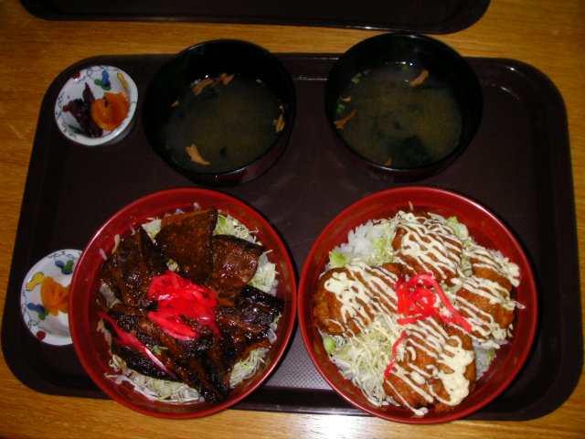 右:から揚げ丼 左:炙り豚丼 @各850から揚げにはマヨネーズが掛かってました。炙り豚は炙り過ぎたのかパサパサでしたorz>